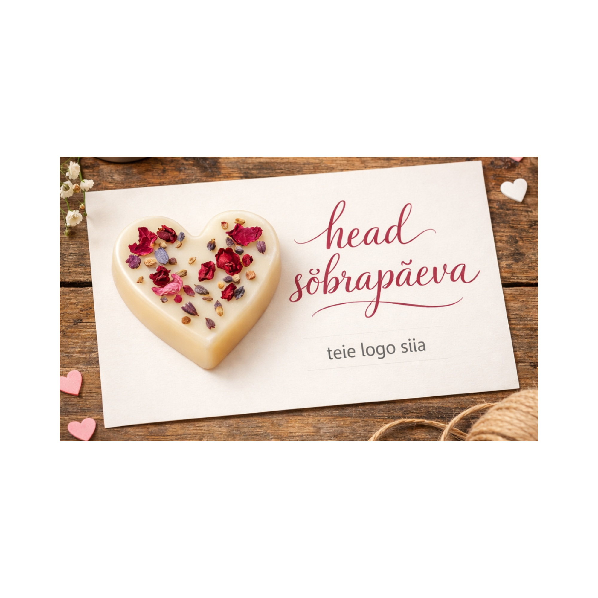 Vastame teile ühe tööpäeva jooksul ja küsime faili teie logost ning tekstist, mida soovite kaardile.